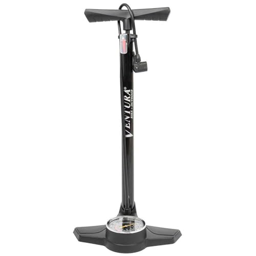 floor pump VENTURA, steel, black, with manometer, with double head, with pump adapter and ball needle