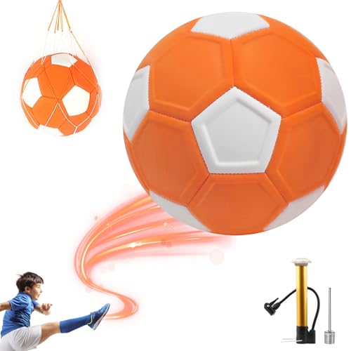 GYHWOFUL Curve Ball fotboll för barn – 20 cm mjuk svärvefotboll med pump, nät och nålar, inomhus utomhus fotbollsleksak för pojkar, flickor och tonåringar (orange vit)