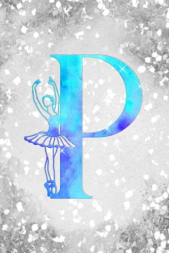 P: Letter "P" Initial Ballet Dance Monogram Gift Notebook - Ballerina on Silver Teal & Blue - College-Ruled Personal Journal, Writing Pad or Diary for Dancers, Girls & Women - 110 Pages, 6x9