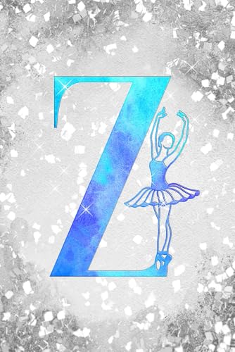 Z: Letter "Z" Initial Ballet Dance Monogram Gift Notebook - Ballerina on Silver Teal & Blue - College-Ruled Personal Journal, Writing Pad or Diary for Dancers, Girls & Women - 110 Pages, 6x9