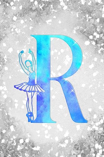R: Letter "R" Initial Ballet Dance Monogram Gift Notebook - Ballerina on Silver Teal & Blue - College-Ruled Personal Journal, Writing Pad or Diary for Dancers, Girls & Women - 110 Pages, 6x9