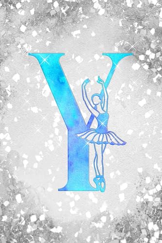 Y: Letter "Y" Initial Ballet Dance Monogram Gift Notebook - Ballerina on Silver Teal & Blue - College-Ruled Personal Journal, Writing Pad or Diary for Dancers, Girls & Women - 110 Pages, 6x9