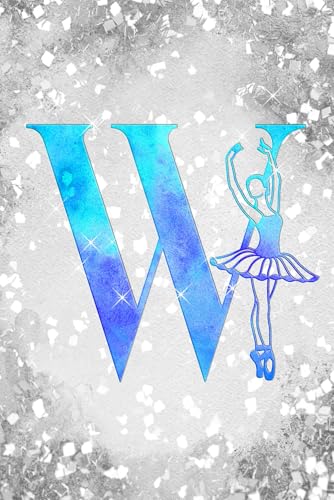 W: Letter "W" Initial Ballet Dance Monogram Gift Notebook - Ballerina on Silver Teal & Blue - College-Ruled Personal Journal, Writing Pad or Diary for Dancers, Girls & Women - 110 Pages, 6x9