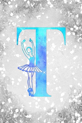 T: Letter "T" Initial Ballet Dance Monogram Gift Notebook - Ballerina on Silver Teal & Blue - College-Ruled Personal Journal, Writing Pad or Diary for Dancers, Girls & Women - 110 Pages, 6x9