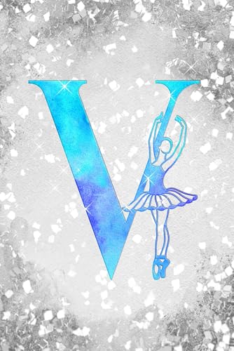 V: Letter "V" Initial Ballet Dance Monogram Gift Notebook - Ballerina on Silver Teal & Blue - College-Ruled Personal Journal, Writing Pad or Diary for Dancers, Girls & Women - 110 Pages, 6x9