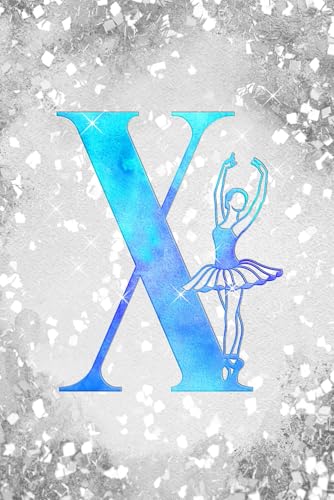 X: Letter "X" Initial Ballet Dance Monogram Gift Notebook - Ballerina on Silver Teal & Blue - College-Ruled Personal Journal, Writing Pad or Diary for Dancers, Girls & Women - 110 Pages, 6x9