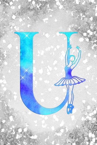 U: Letter "U" Initial Ballet Dance Monogram Gift Notebook - Ballerina on Silver Teal & Blue - College-Ruled Personal Journal, Writing Pad or Diary for Dancers, Girls & Women - 110 Pages, 6x9