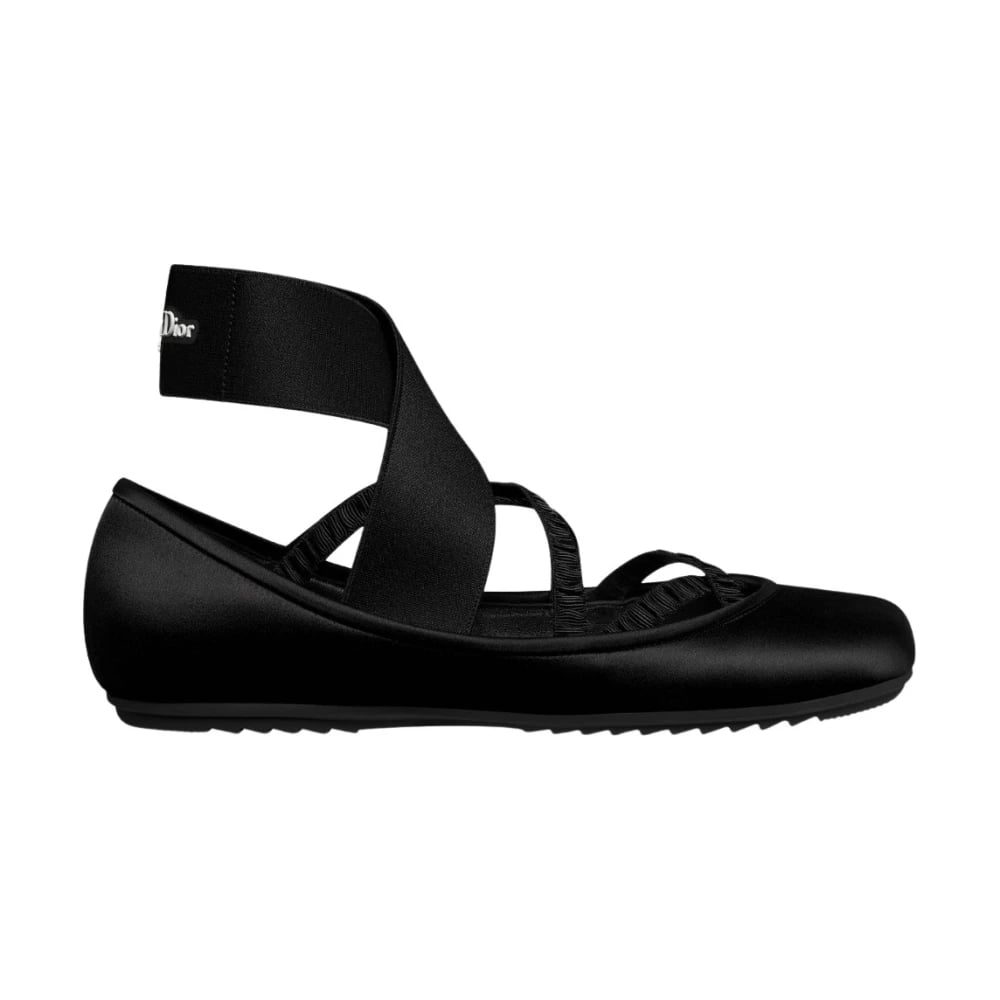 Dior, Skor , Dam, 38 EU, Svart Ballett Flat Elastisk Rem