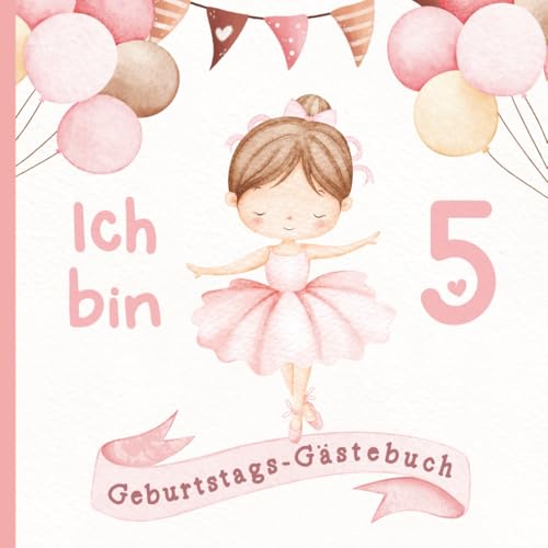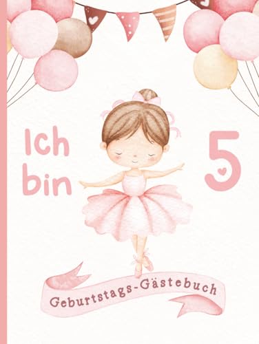 Ich bin 5 – Geburtstags-Gästebuch: Party-Gästebuch für fünfjährige Mädchen | Erinnerungsstück für Eltern & Töchter | Ballett-/Ballerina-Thema