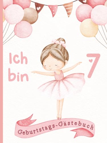 Ich bin 7 – Geburtstags-Gästebuch: Party-Gästebuch für siebenjährige Mädchen | Erinnerungsstück für Eltern & Töchter | Ballett-/Ballerina-Thema