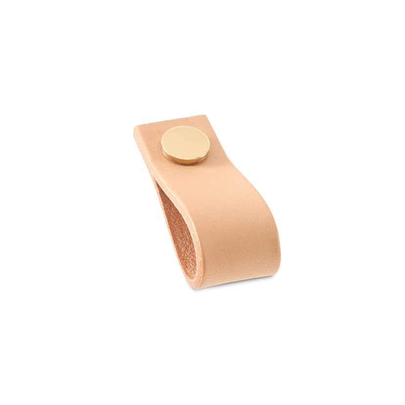 Ballingslöv Handtag Bad i Läder Knopp RK-230 Brunt läder, Mässing RK230B