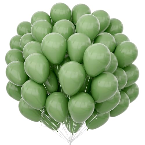 Unisun Salvia gröna ballonger 100 st, 30 cm olivgröna latexballonger pack för grune tema ballong båge kit födelsedag bröllop baby shower karneval evenemang festdekorationer