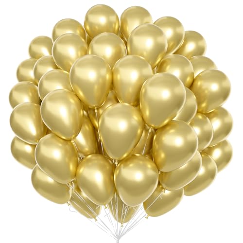 Unisun guldballonger 100 st, 30 cm (12 tum) metallic krom guld latex ballonger pack för guld tema ballong båge kit födelsedag bröllop baby shower karneval evenemang festdekorationer