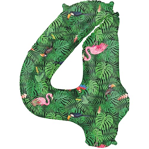 Folat 64154 ballong födelsedag siffra 4 Jungle Vibe grön 86 cm helium dekoration födelsedagsdekoration, ballong nummer, cm
