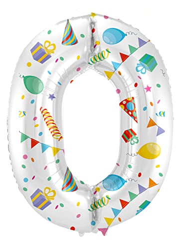 Folat 64170 ballong födelsedag siffra 0 glad fest vit med gåvor och dekoration 86 cm heliumdekoration födelsedagsdekoration, ballong nummer, färgglad