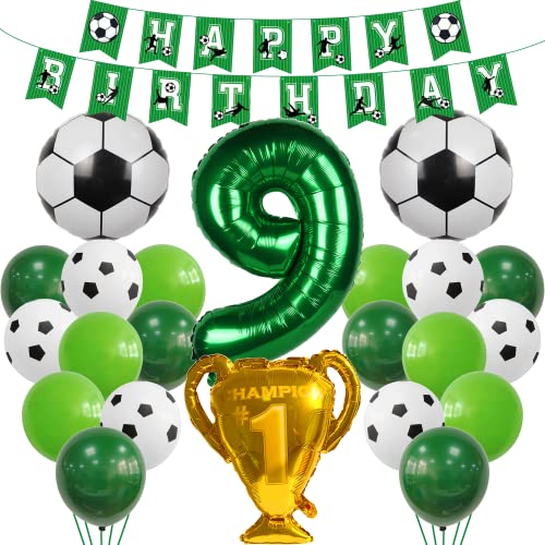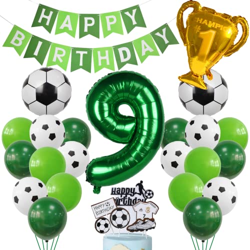 Cnrose Fotboll ballong Grön födelsedag 9 År Pojke Dekoration
