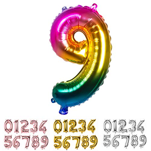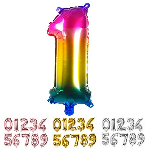 Boland - Folieballong, nummer, storlek 36 cm, regnbågsfärger, nummerballong, nummer, ballong, helium, födelsedag, årsdag, årsdag, årsdag, år, år, år, överraskningsfest, dekoration
