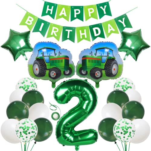 Traktor 2 År Pojke Dekoration - Födelsedag Ballong Med Happy Birthday-Girlang för Barn