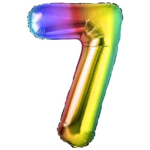 Ballong 7:e Födelsedag Nummer 7 Flerfärgad Folie XXL Gigantisk Folieballong 40" Födelsedagsdekoration. Flyger med Helium