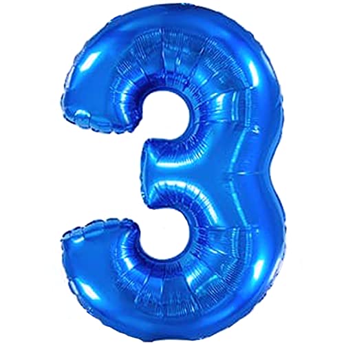 Ballong 3:e Födelsedag Nummer 3 Blå XXL Gigantisk Folieballong 40" Födelsedagsdekoration för Pojke. Flyger med Helium