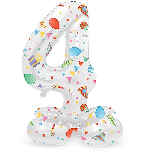 Folat 63964 ballong födelsedag stående siffra 4 glad fest vit med gåvor och dekoration 72 cm dekoration födelsedagsdekoration, ballongnummer, inget helium krävs, färgglad