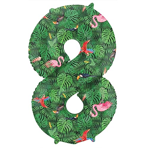 Folat 64158 ballong födelsedag siffra 8 djungel vibe grön 86 cm helium dekoration födelsedagsdekoration, ballong nummer, cm