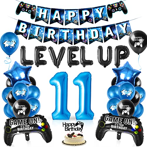 Videospel ballong 11. Födelsedag blå, födelsedag 11 år pojke spel, ballonger blå svart, siffror 11 folieballong, för barn pojke födelsedagsfest dekoration