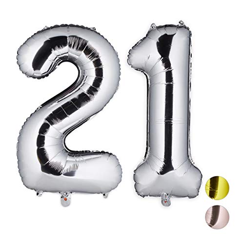 Relaxdays Folieballong nummer, dekorativ ballong för 21. Födelsedag, öljetter för upphängning, XXL nummerballong, 85–100 cm, silver, H x B x D: ca 85 x 50 x 17 cm