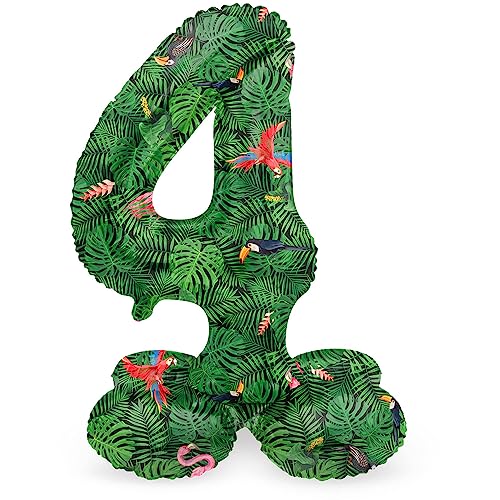 Folat 63944 ballong födelsedag stående siffra 4 djungel vibe grön 72 cm dekoration födelsedagsdekoration, ballongnummer, ingen helium krävs