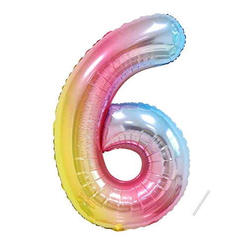 Födelsedag siffror ballong 6 år | folieballong 6, XXL, regnbåge, färggradient, jätte folieballong i 101 cm – ballong, nummerdekoration för födelsedag – flyger med helium