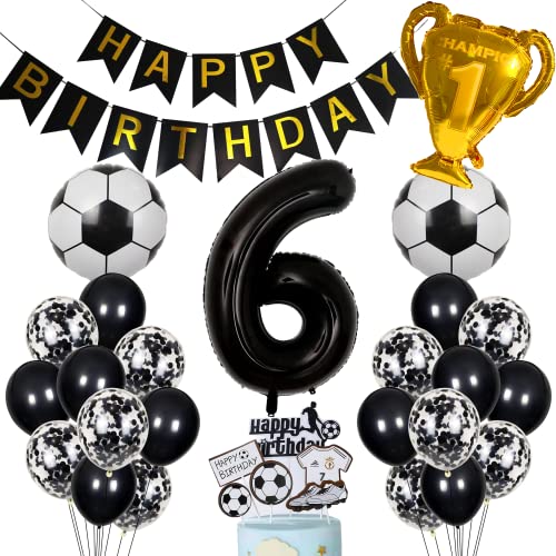 Cnrose Fotboll ballong 6. Födelsedag svart heliumballong 6 födelsedag pojke kaka toppare fotboll födelsedagsdekoration 6 år barns födelsedag fest dekoration 6. Födelsedagsdekoration fotboll