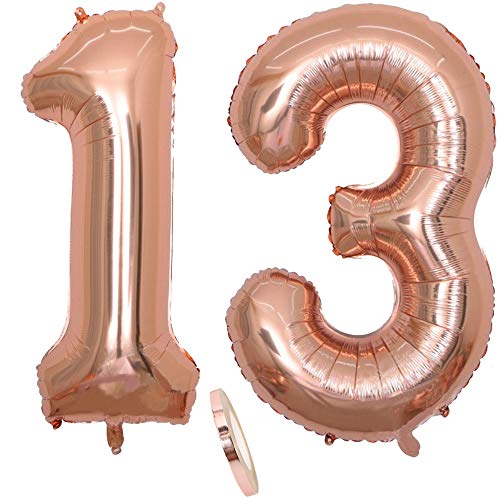 2 ballonger nummer 13, nummer 13, ballong roséguld flicka, 40 tum uppblåsbar helium folieballong roséguld ballongfigurer, jätte ballong för födelsedag, fest, dekoration, avslutningsbal (xxxl 100 cm)