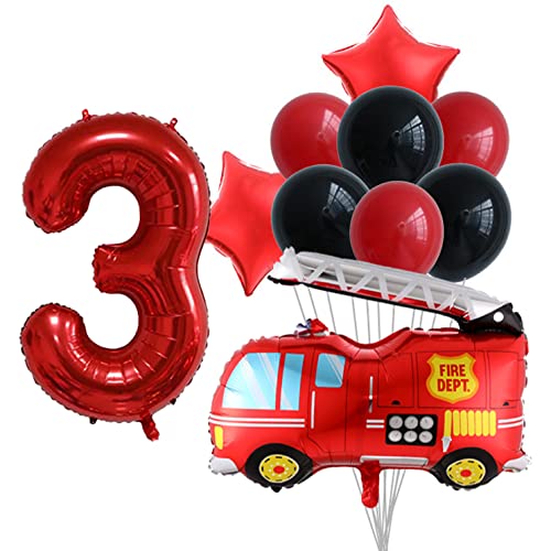 HCRXVV Brandbil ballong 3. Födelsedag pojke brandkår folieballong festdekoration set för 3 år pojkar barnfödelsedag, brandkår födelsedagsdekoration 3. Födelsedag pojke (10 st)