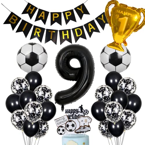 Cnrose Fotboll Ballong 9. Födelsedag Svart Heliumballong Pojke Kaka Toppare Födelsedagsdekoration 9 År Barns Fest Dekoration