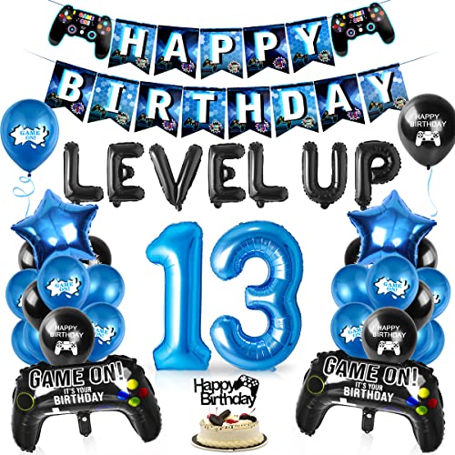 Videospel ballong 13. Födelsedag blå, födelsedag 13 år pojke spel, ballonger blå svart, siffror 13 folieballong, för barn pojke födelsedagsfest dekoration