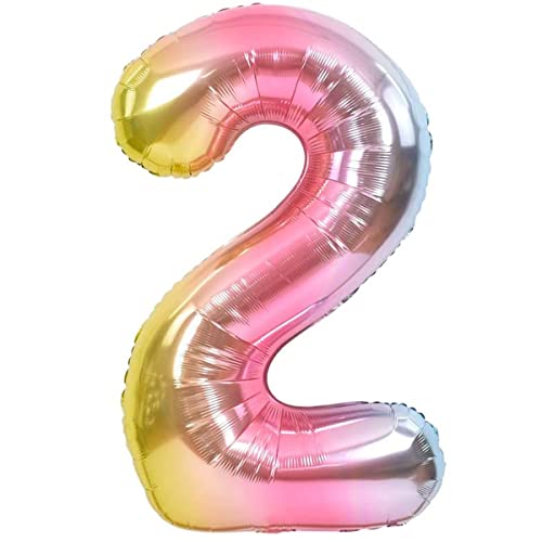Ballong 2:a Födelsedag Nummer 2 Flerfärgad Pastell XXL Gigantisk Folieballong 40" Födelsedagsdekoration. Flyger med Helium
