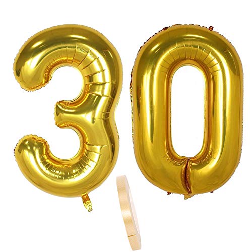 2 ballonger siffror 30 guld, 40 tum uppblåsbar helium folieballong siffror ballonger figurer, nummer jättefolie ballong för pojke födelsedag party dekoration, alla hjärtans dag, avslutningsboll (xxxl