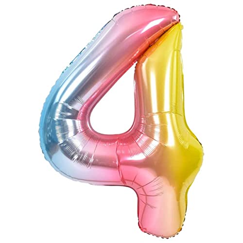 Ballong 4:e Födelsedag Nummer 4 Flerfärgad Pastell XXL Gigantisk Folieballong 40" Födelsedagsdekoration. Flyger med Helium