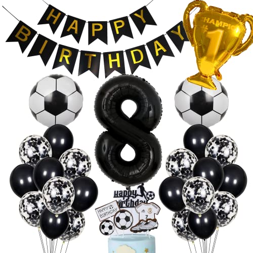 Jxuzh Fotboll Party Dekoration - Födelsedagsdekoration Pojkar Ballong 8. Födelsedag Pojke Fotboll Party Dekoration Stjärna Ballong Gyllene