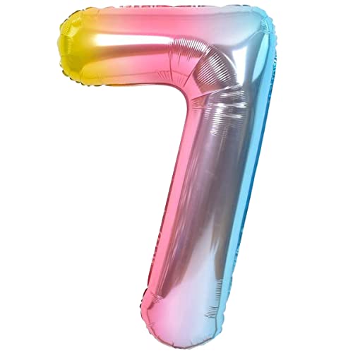 Ballong 7:e Födelsedag Nummer 7 Flerfärgad Pastell XXL Gigantisk Folieballong 40" Födelsedagsdekoration. Flyger med Helium