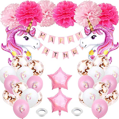 YISKY Enhörning ballong dekoration, födelsedag enhörning ballonger, 3D enhörning folieballonger, för barns födelsedag dekoration fest, baby shower