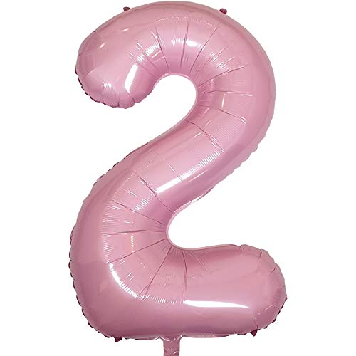 DIWULI Ballong 2:a födelsedag XXL Rosa - Folieballong 2, Nummer 2 Ballong 2 år, Födelsedagsdekoration 2:a födelsedag Helium Festdekoration Pojkeflicka, Nummerballongdekoration, Nummerballong