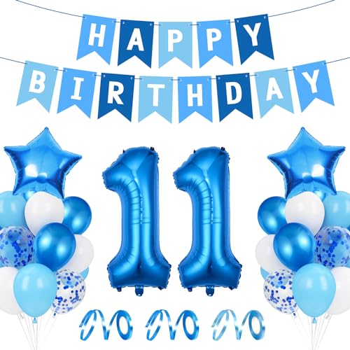 Ballong 11. Födelsedag blå – Happy Birthday-folieballong, jätte folieballong nummer 11, ballongdekoration, födelsedagsdekoration pojkar 11 år
