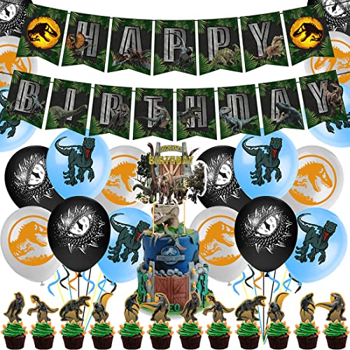 MEZHEN Födelsedagsdekoration Jurassic dinosaurieballong dino tårtdekoration barnfödelsedag ballong girlang Happy Birthday-banderoll dinosaurie födelsedagsdekoration 32 stycken