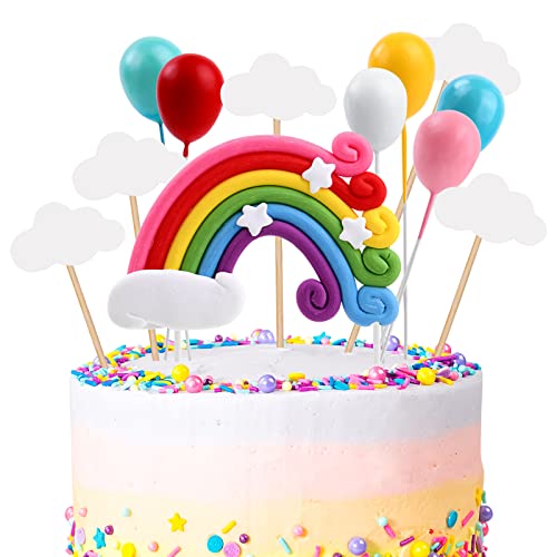 OSDUE Tårtdekoration för födelsedag, makaron-tårtdekoration, Happy Birthday, regnbågstopper, moln, ballong för barn, flicka och pojke
