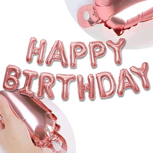 Decoraparty Ballong i aluminium med Happy Birthday-bokstäver, banderoll med rosa guld för fest, födelsedag, metallisk hängande banderoll, 340 x 35 cm