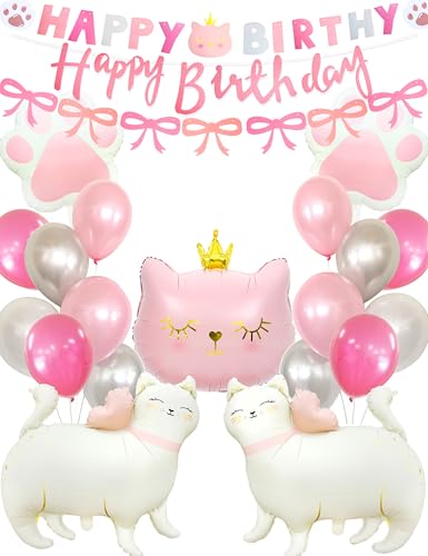 Regndekoration, Happy Birthday, rosa, katter, födelsedagsdekoration, djur, barnfödelsedag, flickdekoration, ballong, girlang, konfettiballonger, festdekoration