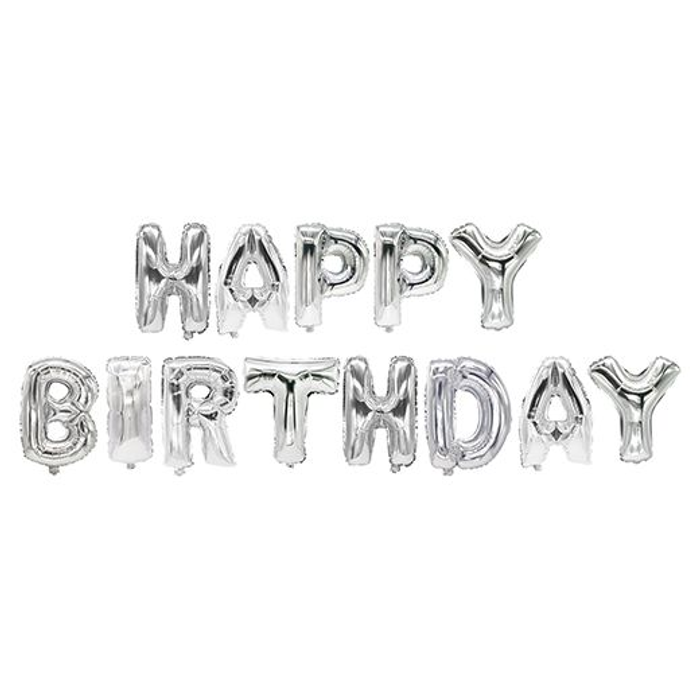 Ballong folie silver "Happy Birthday" 35cm