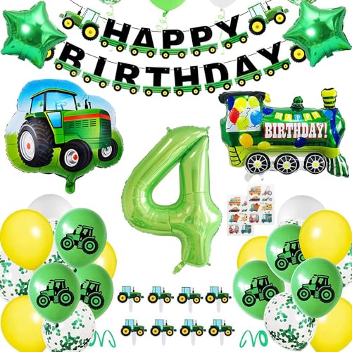BECILES Födelsedagsdekoration med traktor, ballong i aluminiumfolie med siffran 4, grön, Happy Birthday-girlang för fest