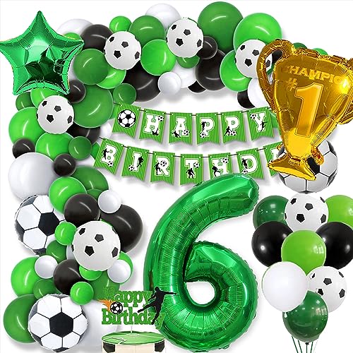 GOLDNICE Fotboll 6-årsdag dekoration pojke, 6. Fotboll, födelsedagsdekoration, 6 år, ballong, grön ballong, girlang, med Happy Birthday-girlang, för barn, pojke, födelsedagsfest, fotbollsdekoration 6